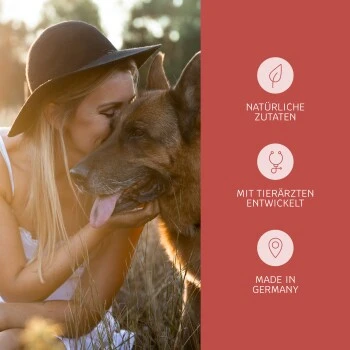 Diese Snacks nehmen hohem Gras und dichten Wäldern den Schrecken: Mit Probiotika, natürlichen Mikronährstoffen, B-Vitaminen und ätherischen Ölen schaffen sie ein ideales Hautmilieu und geben euch die Freude am Spazierengehen in der Natur zurück. Von Tierärzten entwickelt und unwiderstehlich lecker!